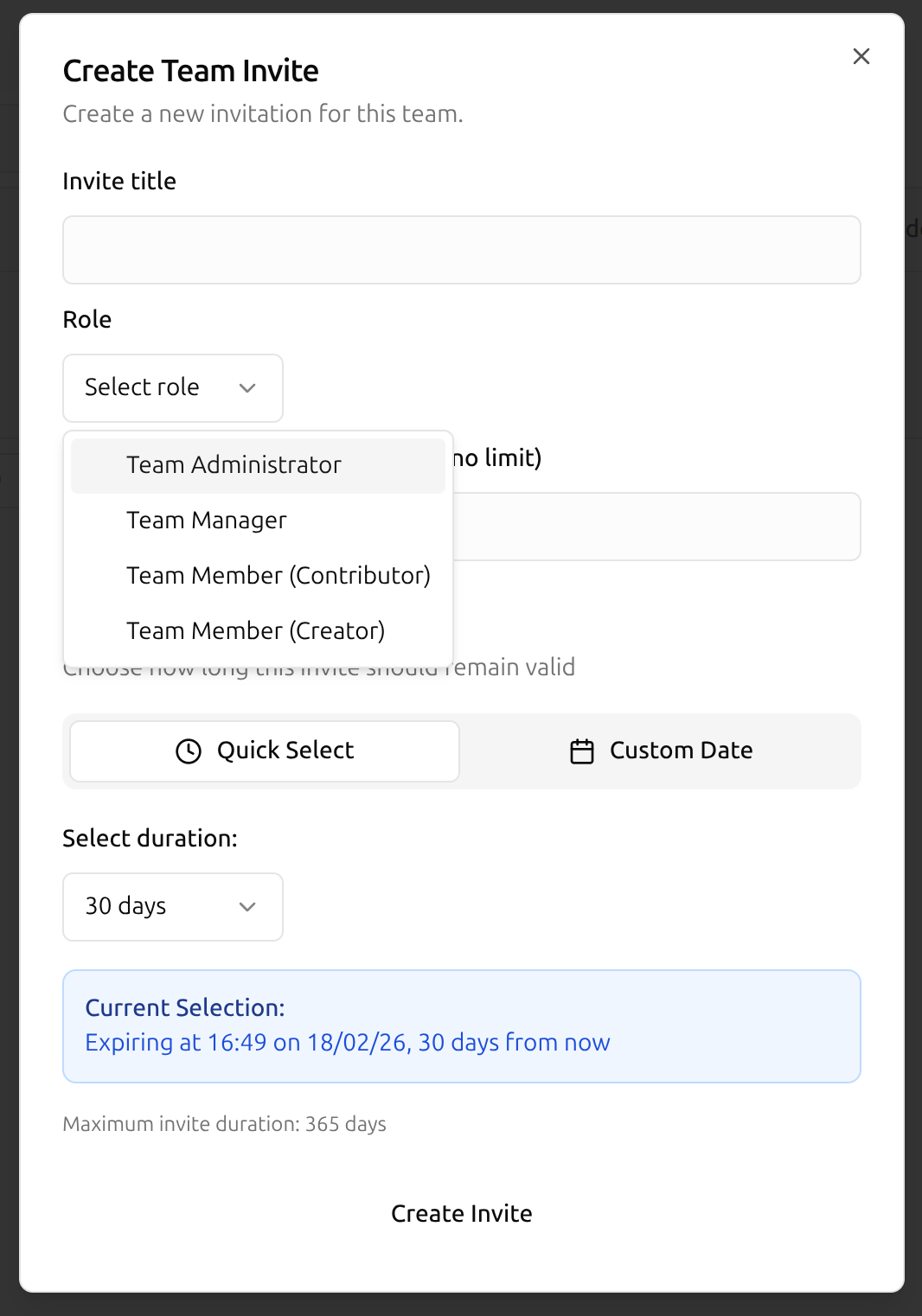 Invite users to their team and assign team roles