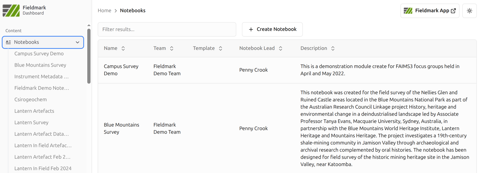 Notebooks — View and manage data collection notebooks