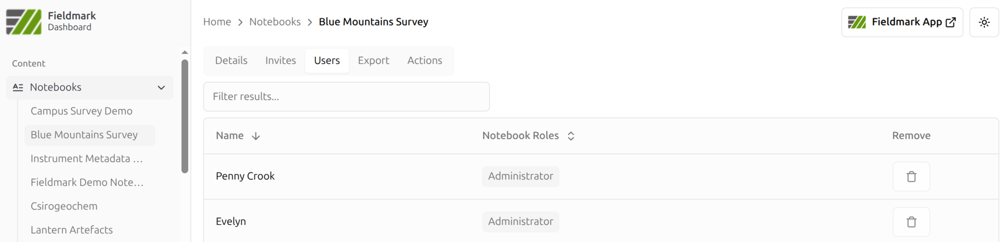 This guide is for IT staff, change management teams, and project administrators who need to manage users, teams, and notebooks in Fieldmark. It covers role assignment, access control, and common administrative workflows.