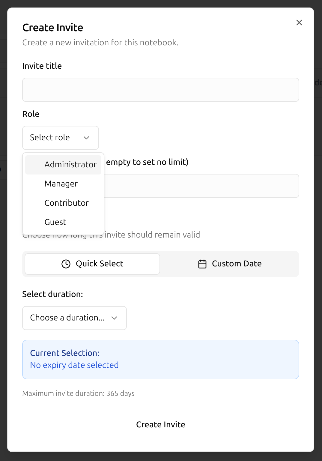 Invite users to notebooks they administer and assign notebook roles
